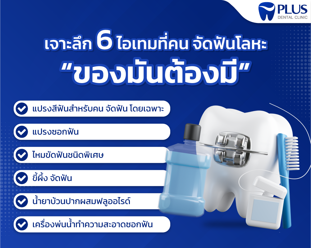 เจาะลึก 6 ไอเทมเด็ดที่คน จัดฟัน โลหะต้องมี! ตัวช่วยทำความสะอาดช่องปาก ลดกลิ่นปาก และป้องกันฟันผุอย่างได้ผล พร้อมคำแนะนำการดูแลฟันจากทันตแพทย์มากประสบการณ์ พบโปรโมชั่นดีๆ ได้ที่ PLUS Dental Clinic ทุกสาขาใกล้บ้านคุณ